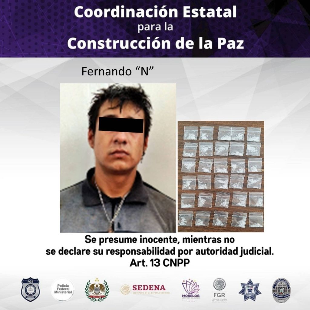 Elementos que integran la Estrategia de Seguridad Mando Coordinado Policía Morelos detuvieron a un hombre por su presunta responsabilidad en delitos contra la salud y/o lo que resulte, en el municipio de Jiutepec.