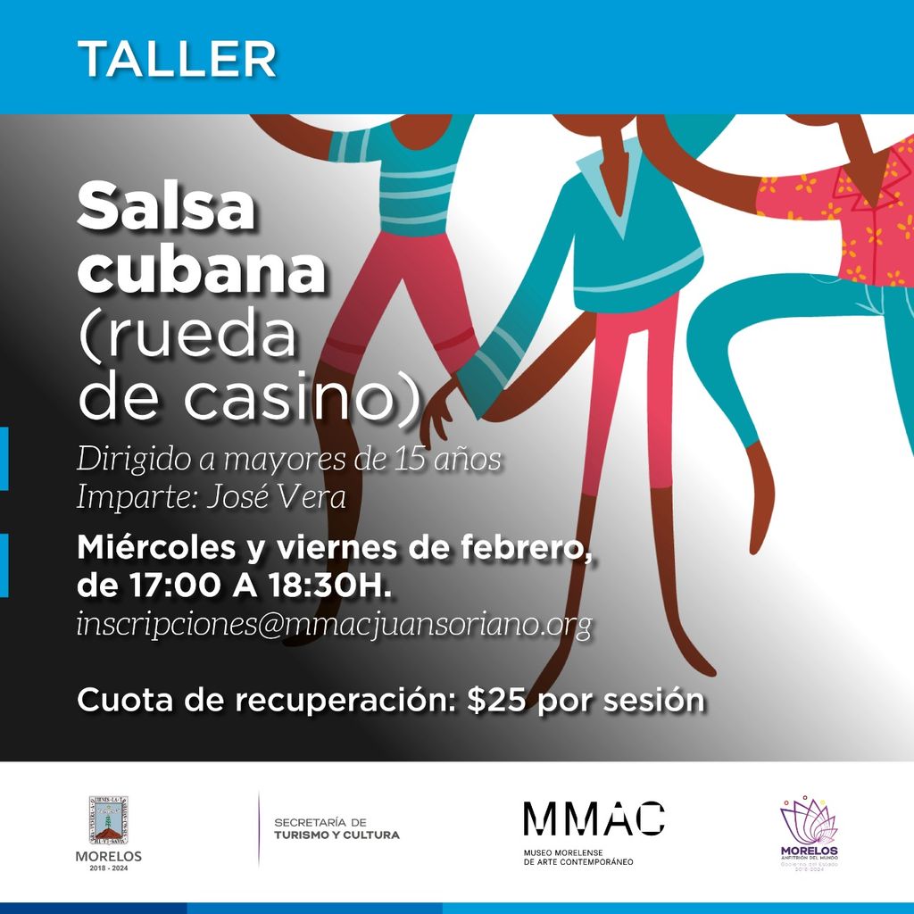 Y los miércoles y viernes de febrero, de 17:00 a 18:30:00 horas, con una cuota de recuperación de $25 por sesión, se ofrecerán en este recinto clases de salsa cubana (rueda de casino), actividad dirigida a mayores de 15 años de edad.