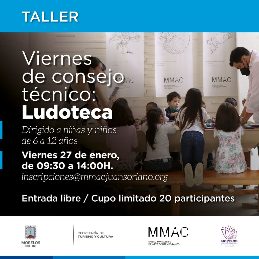 Además de que el viernes 27 de enero que hay Consejo Técnico Escolar, se abre el taller “Ludoteca”, dirigido a niñas y niños de 6 a 12 años de edad de 09:30 a 14:00 horas, con entrada libre y cupo limitado, por lo que se solicita confirmar la participación previamente.