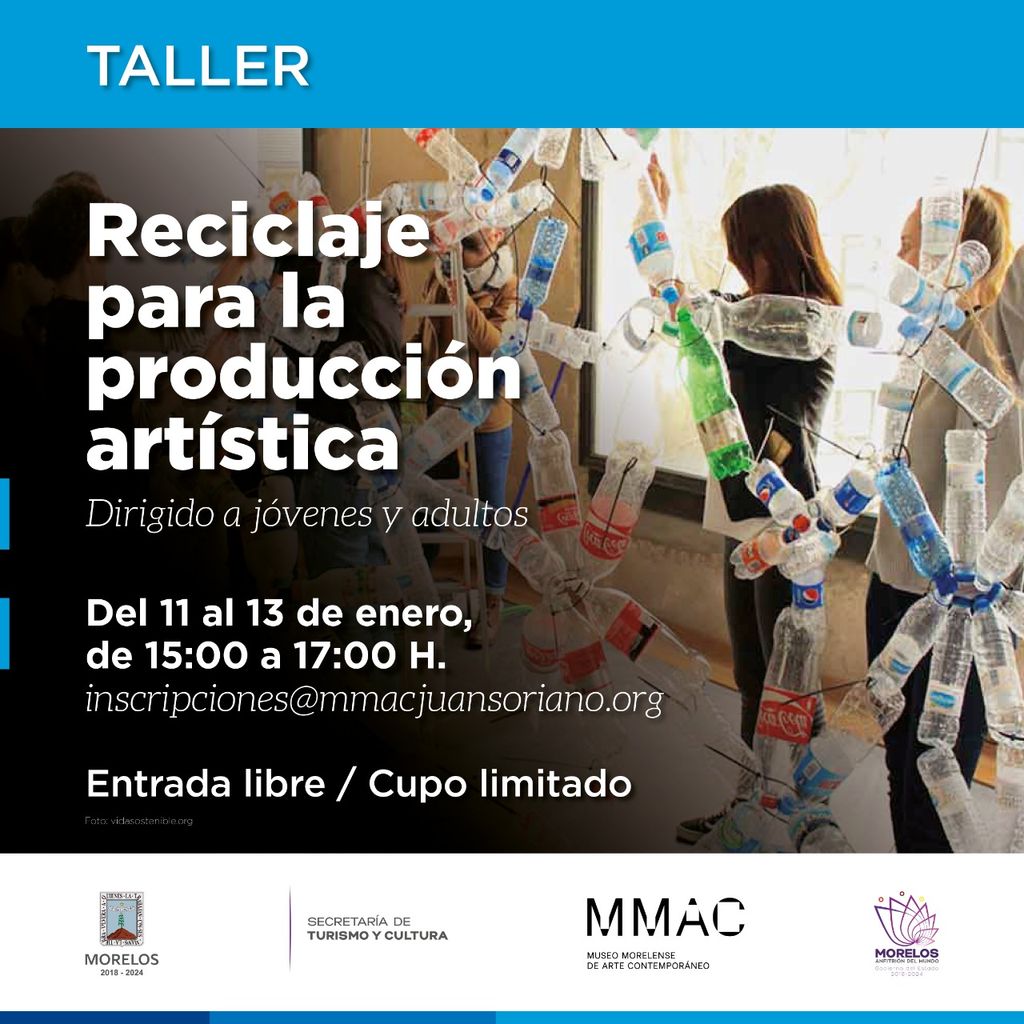 Autoridades de la Secretaría de Turismo y Cultura (STyC) invitan al público en general a los talleres que este mes de enero se ofrecen en el Museo Morelense de Arte de Contemporáneo (MMAC) Juan Soriano, entre los que se encuentran “Reciclaje para la producción artística”, “Arte para niñ@s”, “Bio-collage”, guitarra clásica y salsa cubana.