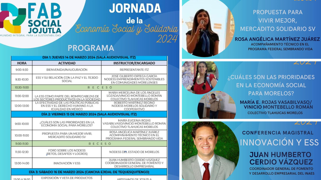 La segunda edición de la jornada de la economía social y solidaria 2024 se realizará del 14 al 16 de marzo en el Instituto Tecnológico de Zacatepec (ITZ) y en la cancha ejidal de Tequesquitengo, en Jojutla.