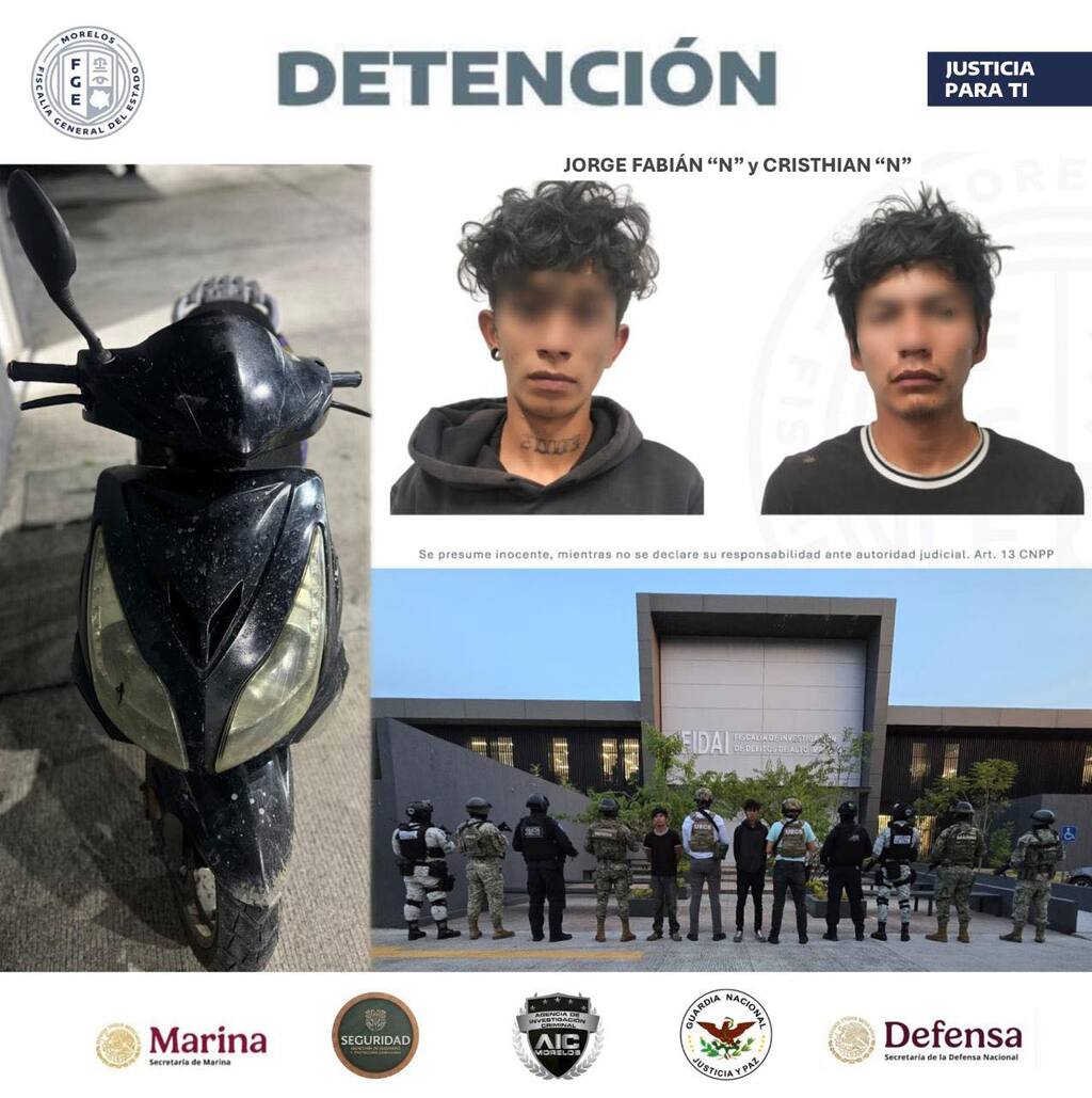 Cristhian “N” y Jorge Fabián “N” fueron detenidos la tarde del viernes 15 de agosto. Se encuentran a disposición de un juez de control que determinará su situación jurídica en los próximos días.
