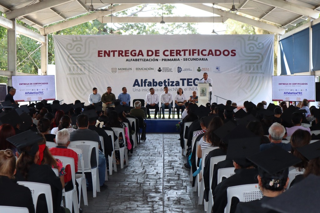 Esta tarde, en las instalaciones del Instituto Tecnológico de Zacatepec (ITZ) se llevó a cabo la Ceremonia de Entrega de Certificados de Alfabetización, Primaria y Secundaria, un emotivo acto que reconoce el esfuerzo de mujeres y hombres de la zona sur del estado de Morelos, en la ruta de la alfabetización de México.