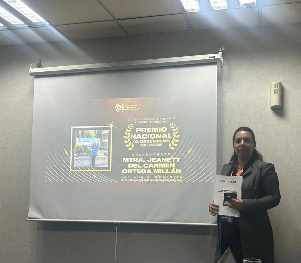 El Colegio Mexicano de Ingeniería en Gestión Empresarial (COMIGE), en su reunión anual celebrada este 6 de diciembre en la Ciudad de México, otorgó el Premio Nacional al desempeño de la Ingeniería. En este caso la ganadora en la categoría Docencia 2025, fue la Dra. Jeanett del Carmen Ortega Millán, académica del Tecnológico Nacional de México /IT de Zacatepec, en reconocimiento a su destacada trayectoria en la formación de profesionales y su contribución al fortalecimiento de la educación tecnológica en México.