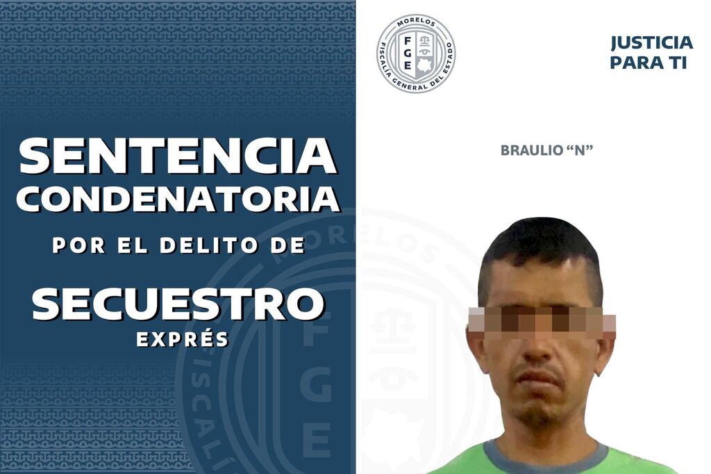 La Fiscalía General del Estado (FGE) de Morelos obtuvo una sentencia condenatoria de 50 años de prisión en contra de Braulio “N”, hallado penalmente responsable de la comisión del delito de secuestro exprés, en hechos suscitados en el municipio de Tlaltizapán.