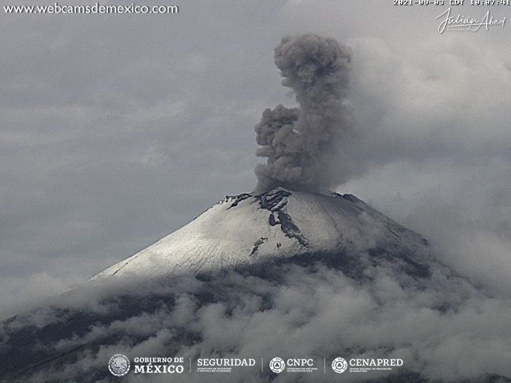 En las últimas 24 horas, mediante los sistemas de monitoreo del volcán Popocatépetl se identificaron 97 exhalaciones acompañadas de vapor de agua y gases volcánicos. Durante la mayor parte del tiempo no se tuvo visibilidad por nubosidad, sin embargo, por la mañana se observó una emisión de gases volcánicos al noroeste. Adicionalmente, se registraron 392 minutos de tremor de baja y mediana amplitud, una explosión menor registrada hoy a las 06:59 h y dos sismos volcanotectónicos registrados hoy a las 02:17 h y 02:22 h, con magnitud calculada de 1.3 y 2.4, respectivamente.